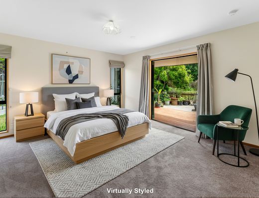 The heart of the home, the kitchen, welcomes you with its lofty ceilings, creating an inviting space to appreciate the minimalist elegance of the exquisite tristone benchtops and cabinetry. An outstanding feature is the property's dual aspect, with almost every room offering distinct vistas. The living area and main bedroom flow onto a private deck, where expansive scenic views to the currently snow-capped western ranges await. Step off the deck onto an infinity lawn, just waiting for the new owners to further develop or enjoy as it is! The 2-bedroom self-contained apartment reveals sweeping city-to-bay views and enjoys complete seclusion from the main residence. To the east lies rural land, lending the apartment with a tranquil rural ambience. The apartment is well-equipped, boasting a full kitchen, two spacious bedrooms, and bathroom all warmed by a heat pump. Notably, each dwelling possesses its own electricity meter, ensuring seamless management. Don't overlook this exceptional chance—a council consented dual-dwelling property that combines comfort, investment potential, and those views.
