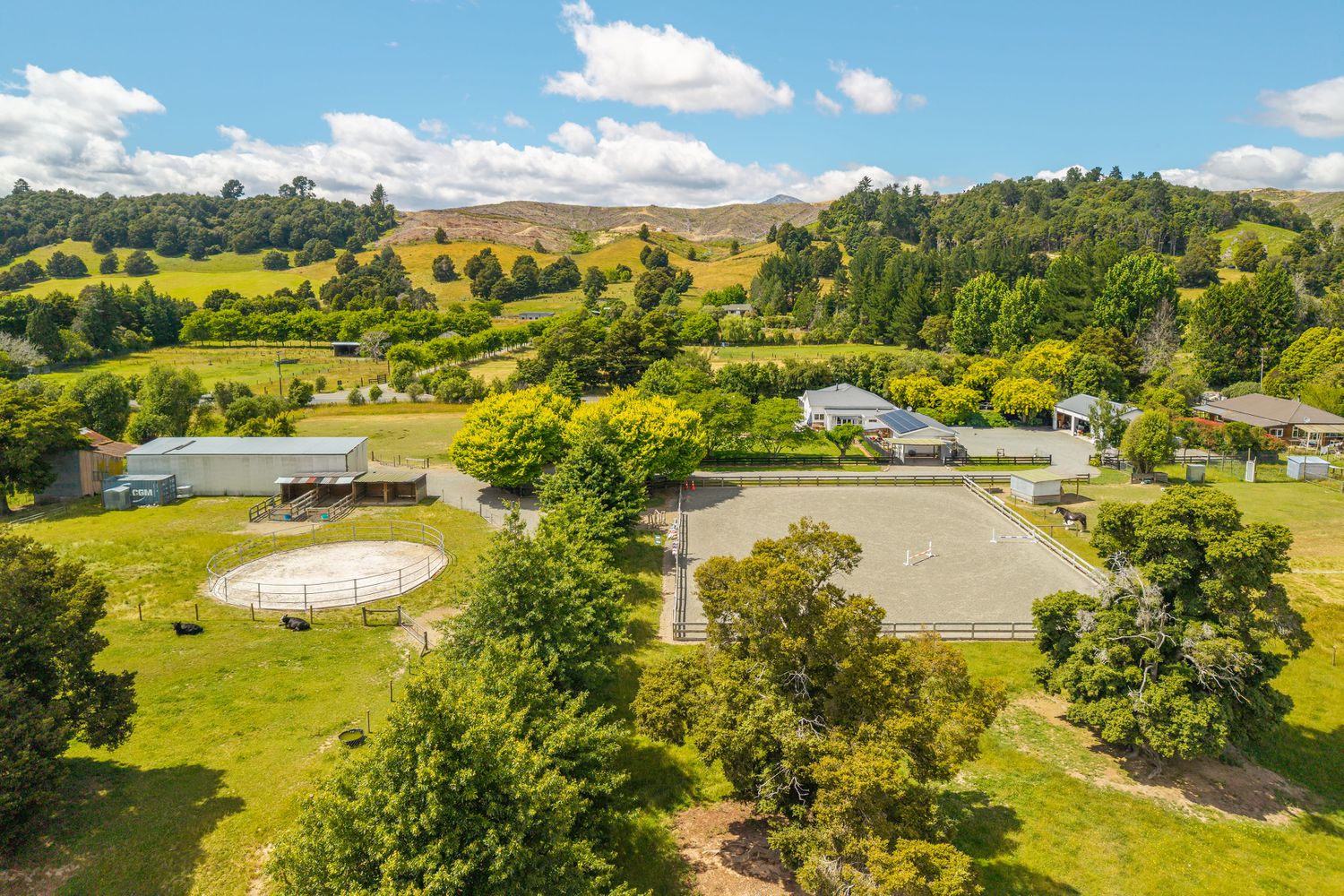 We are delighted to bring to market one of the best and most beautiful equine properties set up for horses and their agistment in the Tasman region. Located only 5 minutes out of Wakefield village on a flat 7 hectare block dotted with beautiful totara trees and colourful exotics, the property offers a wealth of accommodation options including a beautifully presented and renovated 4 bedroom character home, a 2 bed unit ( currently tenanted with tenants who wish to stay) and a one bedroom bedsit. The main dwelling enjoys the benefits of a fully owned PV system complete with battery storage for greatly reduced power costs, selling power back to the grid to be in credit all summer, and has been very well maintained. If your needs aren’t extended family oriented and more income stream focused, on top of the separate rental opportunities, the property offers agistment to up to 8 horses, depending upon how many horses you have of your own. Facilities include a 40m x 30m sand equestrian arena, a round pen, 2 large covered yards, multiple field shelters, a mains electric fence system, reticulated water to most paddocks and those beautiful shade trees. The outbuildings are excellent – a modern 3 car garage/workshop, 4 and 3 bay barns, a single garage/storage room, and various hay, tack or storage sheds, muck collection bays, and a fully enclosed chicken run and walk in hen house. A tree lined raceway down the length of the property is extremely practical, and solid timber fencing around the home and entrance add to the quality of this property. You can hack directly off the property to both Trass valley forest and the Wai-iti loop, via the river. Please note – this property was NOT affected by the recent flood event.