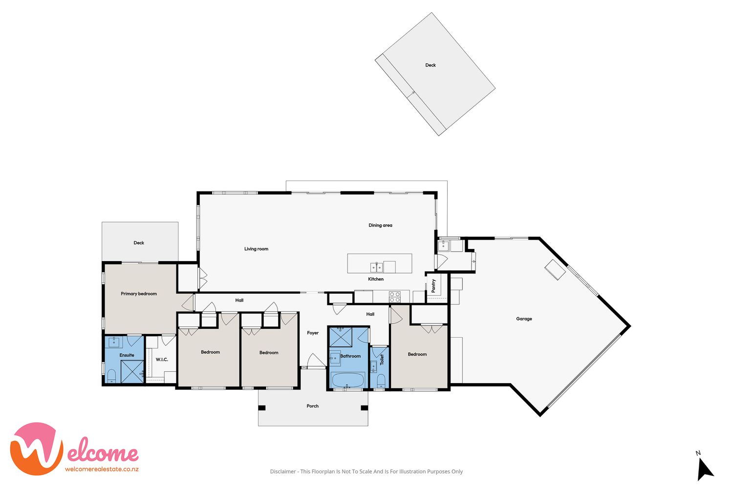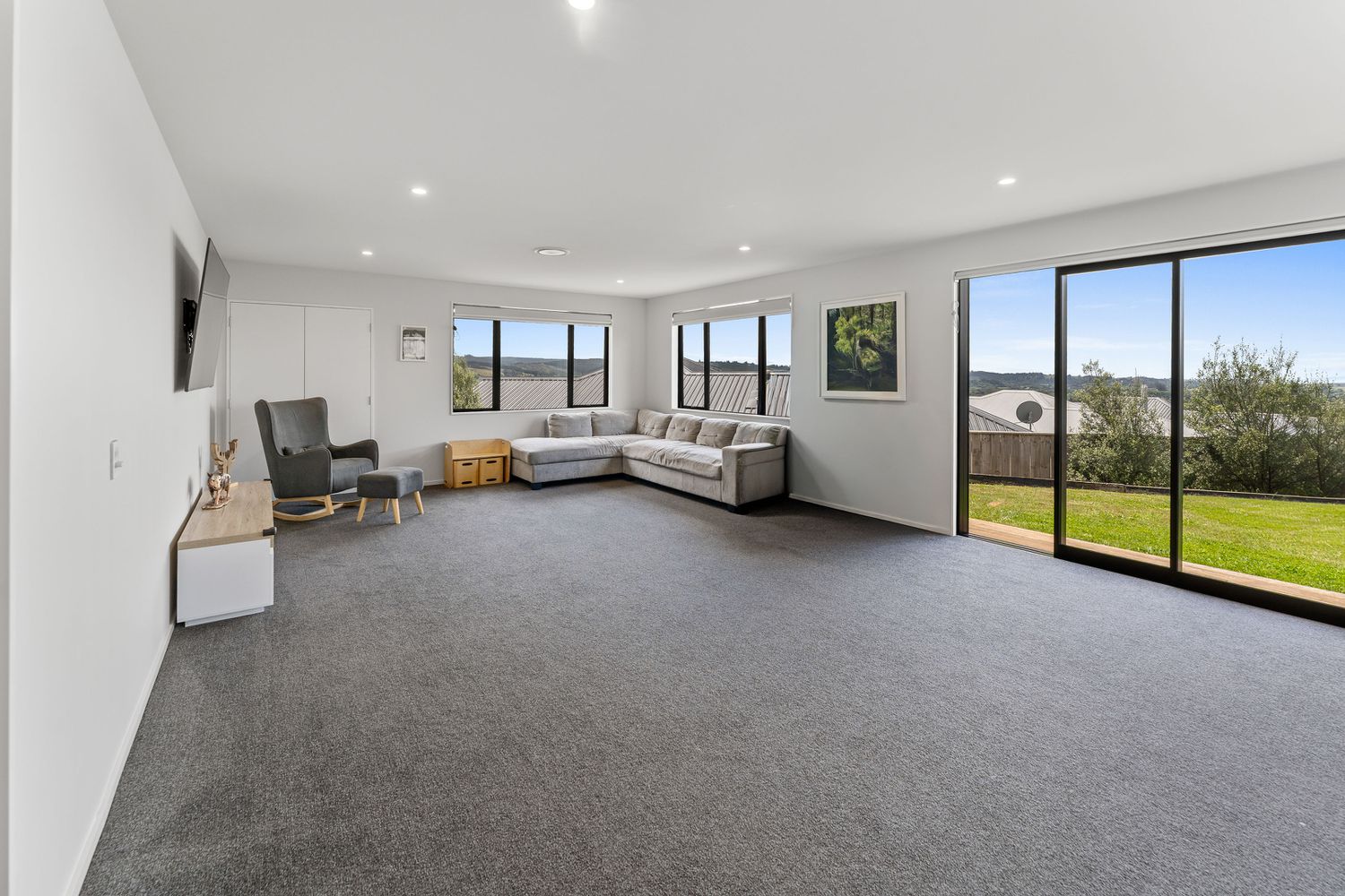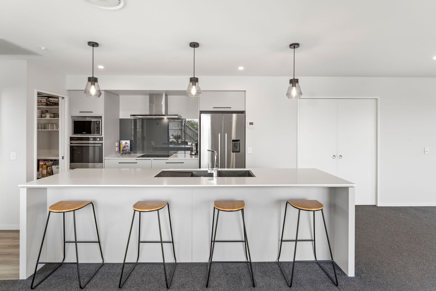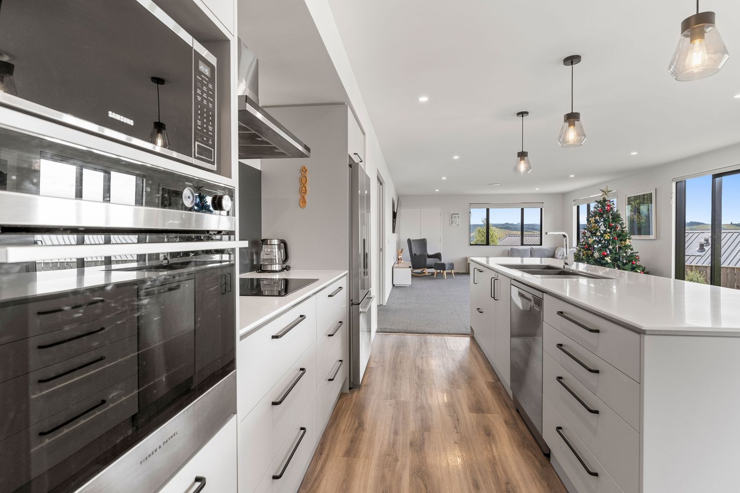If you need 4 bedrooms for the family but don’t have time for a high maintenance older home or rambling section, then look no further! 50 Katania Heights is 4 years new, so fully insulated and double glazed, with a ducted heat and cooling system, and oriented north to catch that famous Nelson sun as well as lovely views from its elevated position. The kitchen takes pride of place in the large open plan kitchen/dining with a beautiful tristone bench, convenient wall oven, and induction hob. The generous living area extends along the front of the 206m2 home, to catch those views, the sun, and to allow easy access to the lawn at the back. A terraced decked area provides a private place to sit and enjoy the outlook down the valley towards Mt Owen. All 4 bedrooms are well sized, and have fitted wardrobes, with the main bedroom ensuite housing a large shower with dome, and walk in robe. A feature I noticed and the new owner will appreciate is the stylish louvre window treatments, and well placed sun blinds, some double layered where required. The garage is an over sized 55m2 ( approx.) with attic storage and shelving already in place.