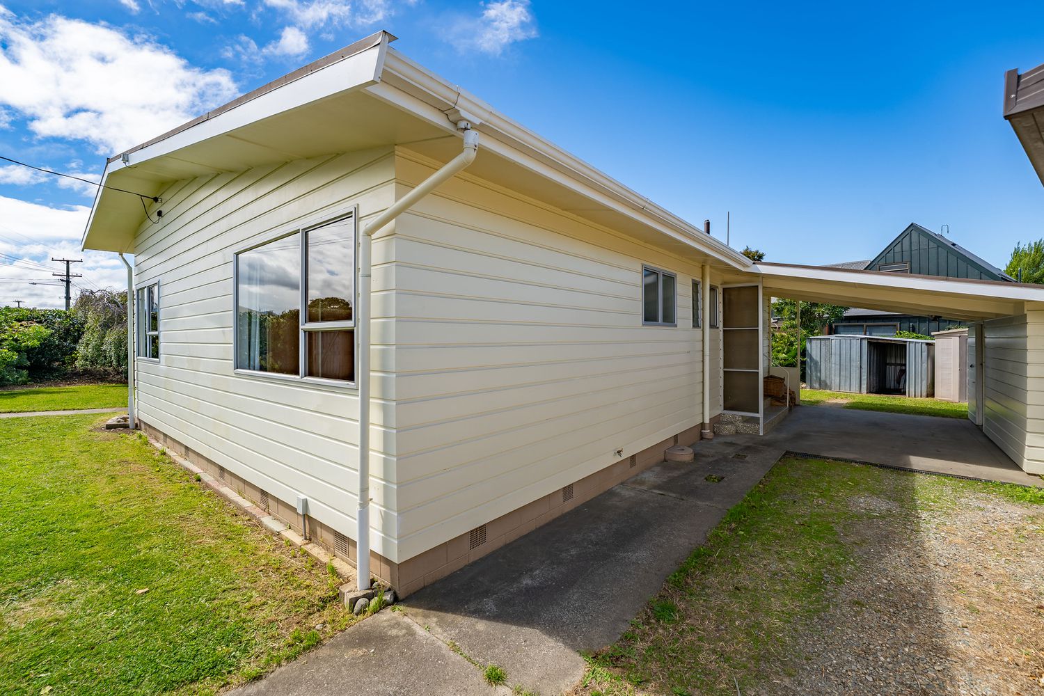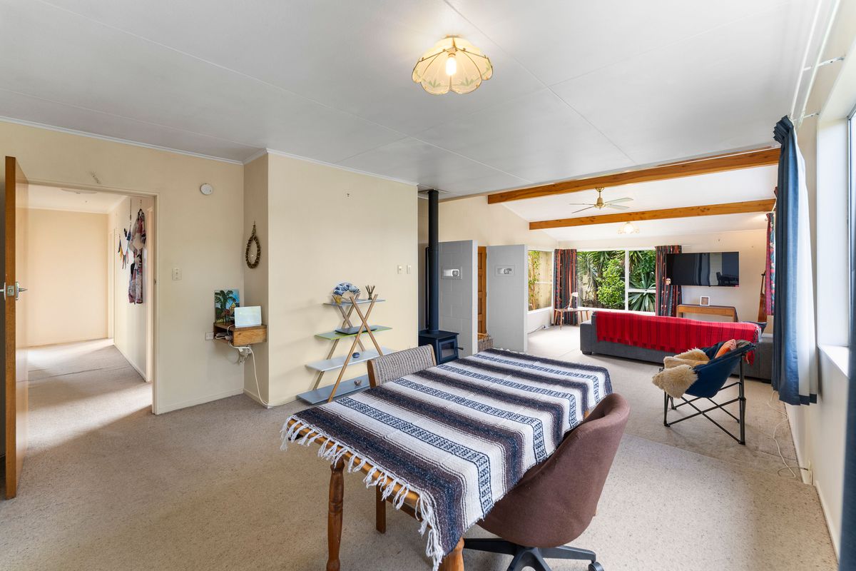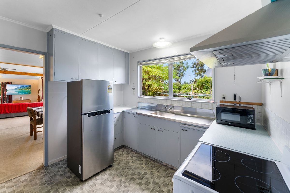 The reasons why the current owners bought this property, when moving to Motueka 6 years ago, remain the same today - a solidly built home on a full 809m2 section, in a great part of town. Ever wanted a funky split level lounge? The L shaped dwelling has a light filled lounge and dining room, with that split level living room, and a brand new logburner, a separate kitchen with original cabinetry but a new stove, with the 3 bedrooms, laundry and bathroom along the other wing. Outside, the established hedges provide a good level of privacy and shelter, and a separate garage with extra off street parking. Fruit trees include orange, lemon, feijoa, black Doris plum and yummy green eating grapes.